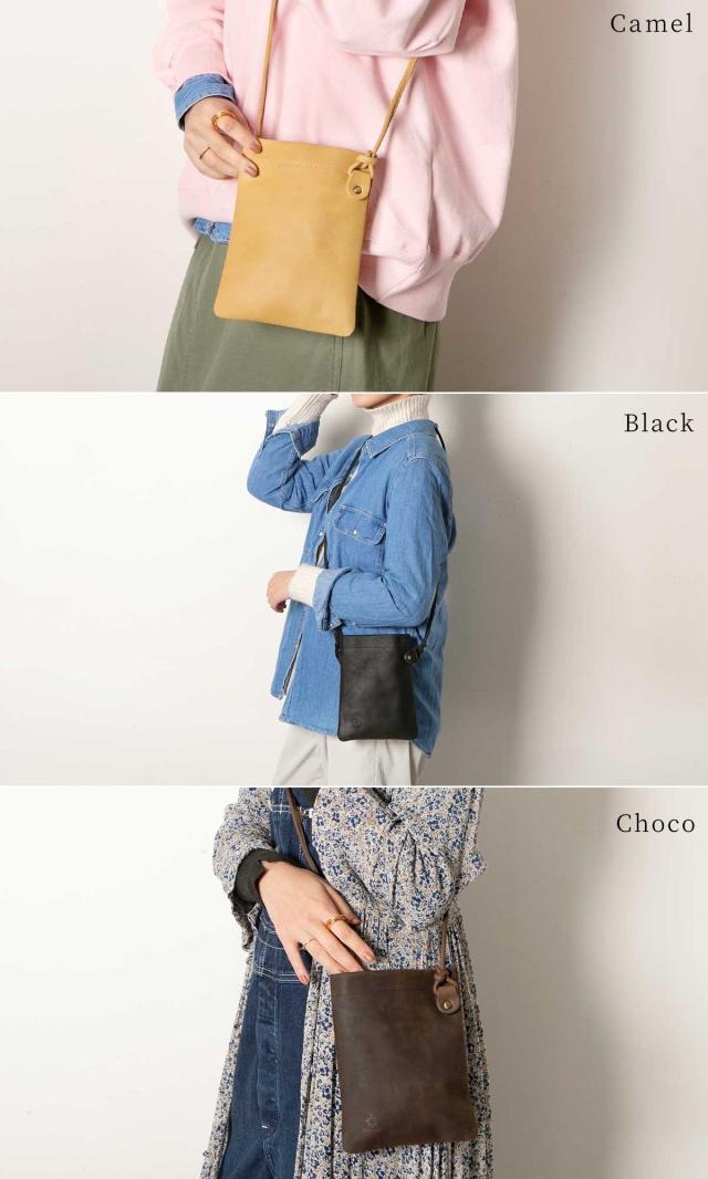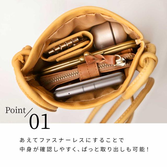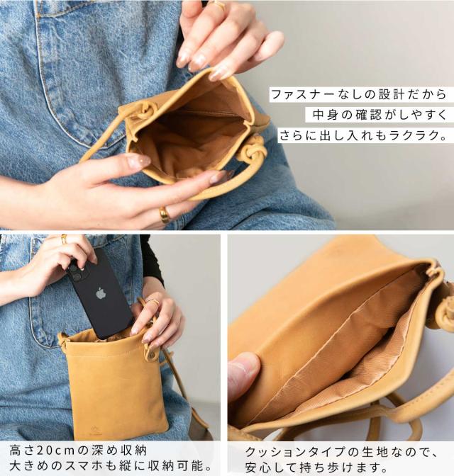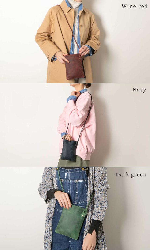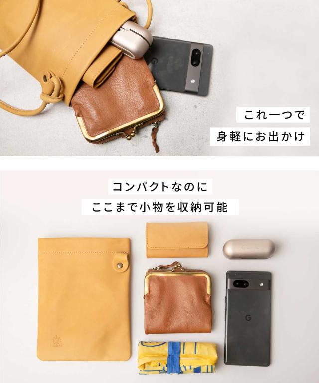 手元に持っておきたいスマホや財布をひとまとめに。マチが無いのでスリムな見た目。