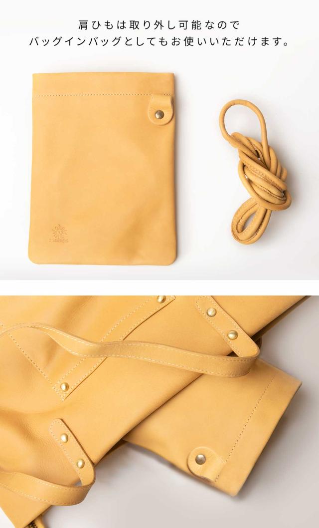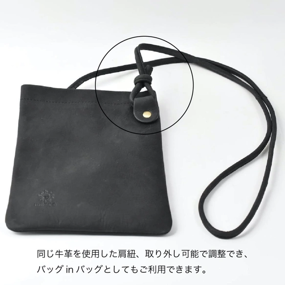 同じ牛革のストラップが付属しています。長さ調節や取り外しも可能です。