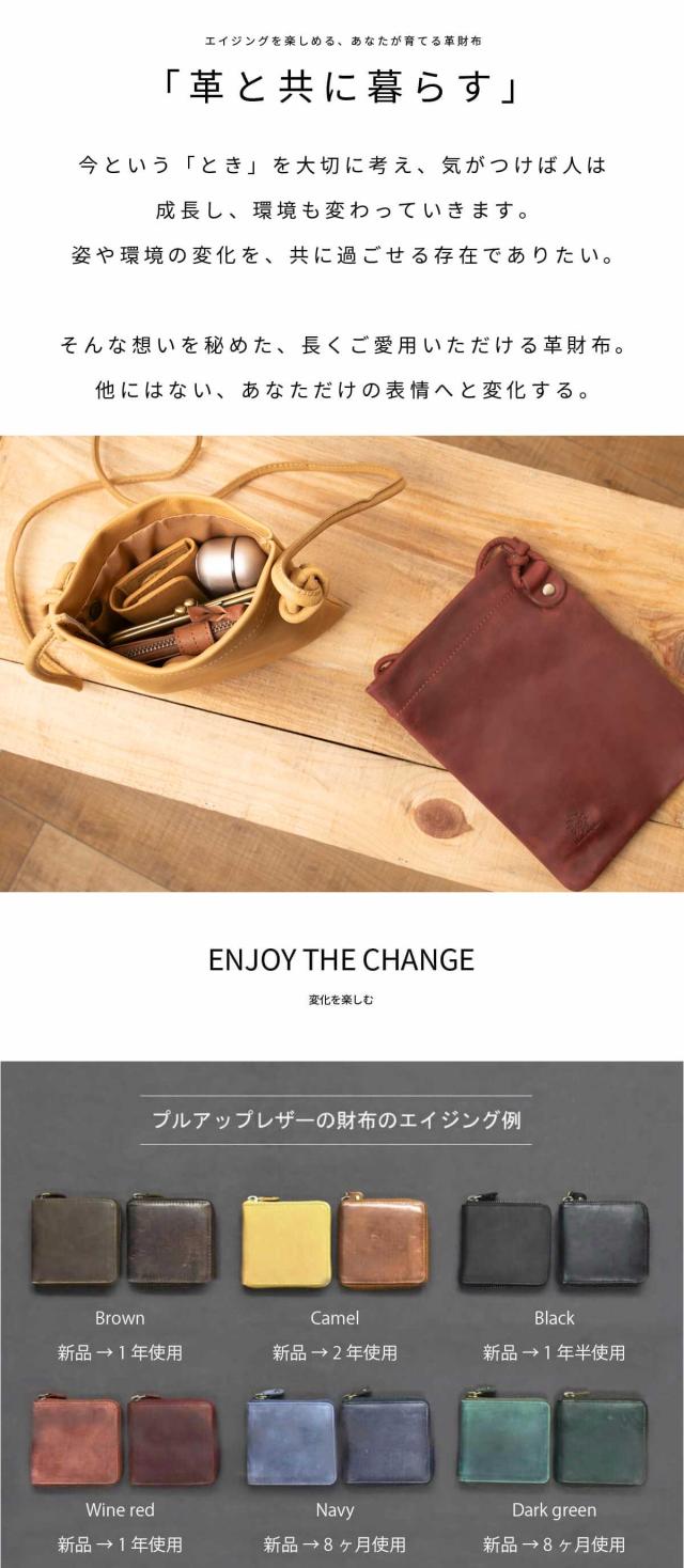 オイルを多く含んだプルアップレザーを全面に使用しています。毎日使うことで自然とエイジングは進んでいきます。半年も経つと本革は新品とはまた違った質感や色合いに変化していきます。