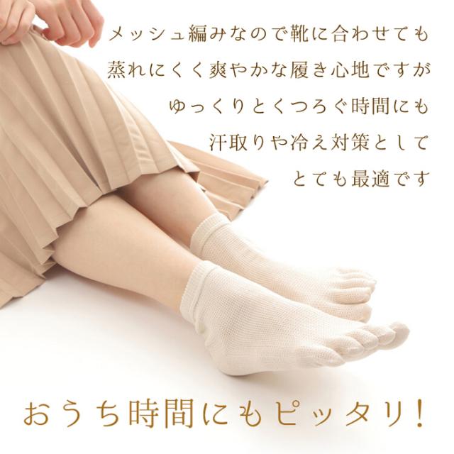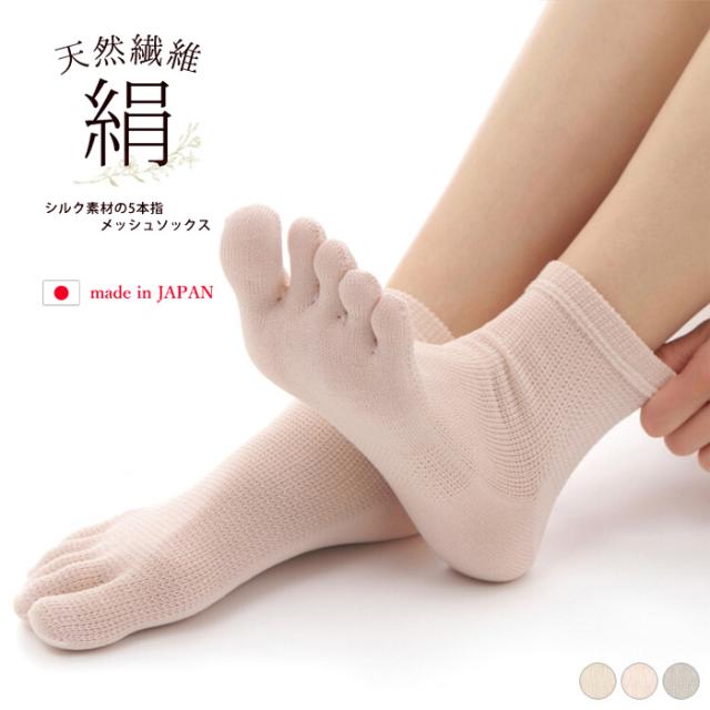 シルク 日本製 5本指 メッシュソックス 靴下 絹 5本指 ソックス (mm-4546)メール便【送料200】 天然繊維 保湿 吸湿 通気性 冷暖房対策 冷え対策 美肌 踵 足先 気になるガサガサ オールシーズン 薄手タイプ 夏は涼しく冬は暖か 天然繊維の快適さ agesugi_sfa