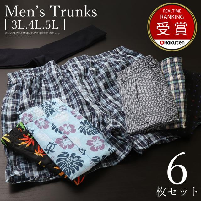 送料無料! 大寸 パンツ メンズトランクス 6枚セット 3L/4L/5L 2枚組×3パック 前開き 大きいサイズ 綿100% 下着 肌着 インナー チェック プリント柄 あす楽