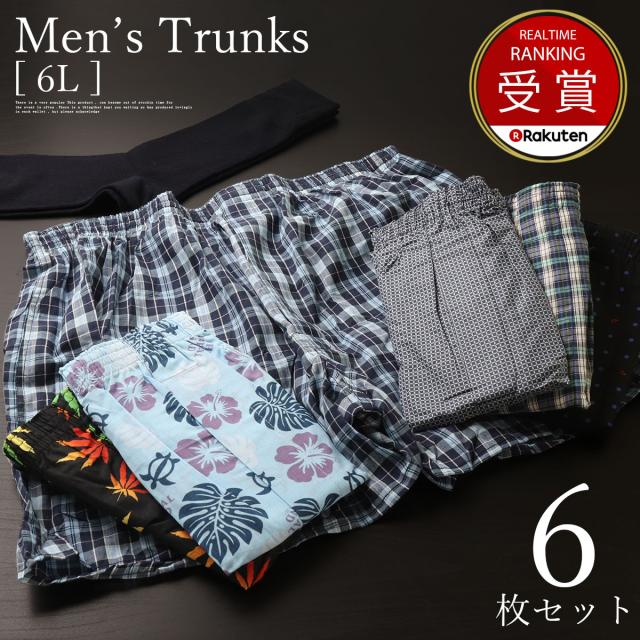 送料無料! 大寸 パンツ メンズトランクス 6枚セット 6L 2枚組×3パック 前開き 大きいサイズ 綿100% 下着 肌着 インナー チェック プリント柄 あす楽