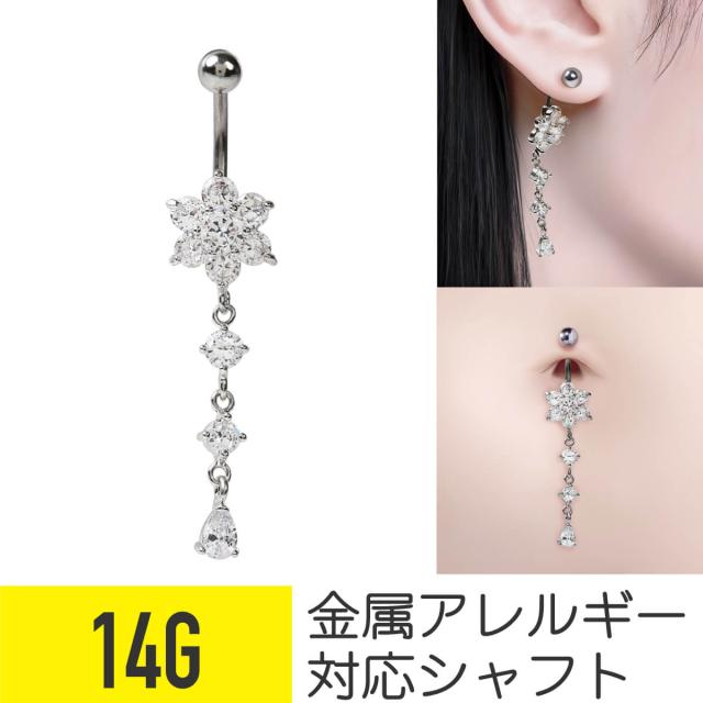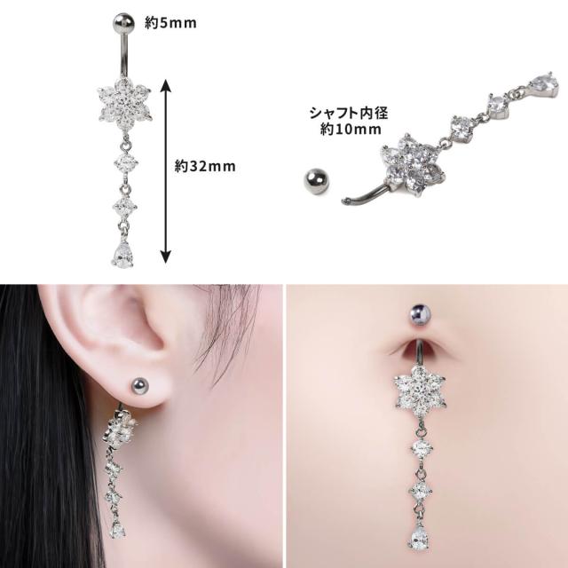 フラワージュエル バナナバーベル 14G サージカルステンレス ジルコニア ジュエル シルバー イヤーロブ へそピアス 軟骨ピアス ボディピアス フラワー ジェム チャーム