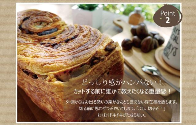 - 1斤で600gもありずっしり重い。 写真の通り栗の実沢山入ってます。デニッシュの甘さを控えてくれているので、栗の甘さが引き立ちとても美味しい。6等分しましたが1切れで満腹です。買ってみて良かったです。
