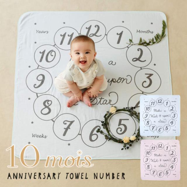 ディモワ 10moisアニバーサリータオル ナンバーブルー モーヴ おくるみ ブランケット ガーゼ 出産祝い ギフト 日本製 国産 赤ちゃん ベビープレゼント 贈り物 フィセル