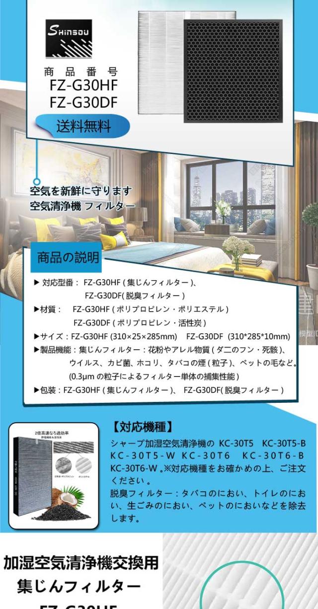 シャープ FZ-G30HF FZG30HF FZG30DF 集じんフィルター fz-g30hf fz-g30df 脱臭フィルター 交換フィルター sharp FZ-G30DF FZ-H30DFの同等品 加湿空気清浄機 フィルター KC-30T5 KC-30T6 KC-30T7 交換用集塵 脱臭 セット 互換品2枚セット 全て日本国内発送