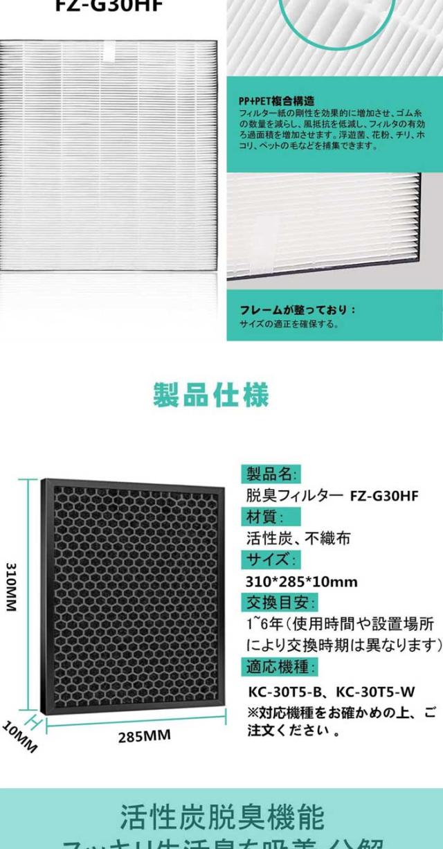 ● 脱臭フィルター FZ-G30DF(FZ-H30DFの同等品) 機能: 料理臭、ペット臭、部屋干し衣類の生乾き臭、体臭、加齢臭などを消臭できます。