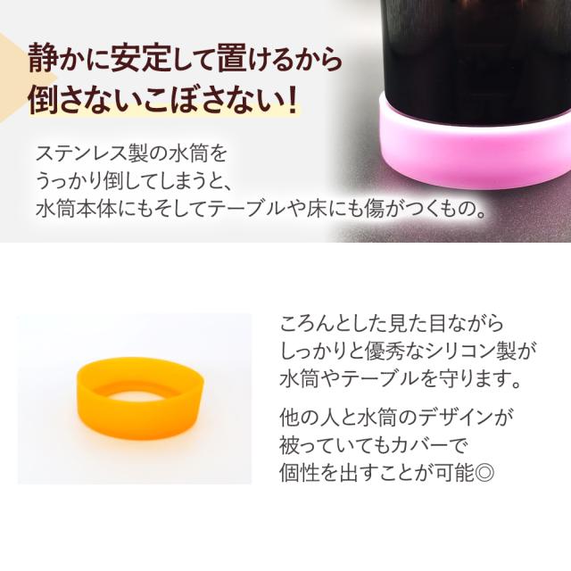 ・簡単取り付けソフトカバー!水筒底やテーブルの傷を防ぎ、滑りにくくしてくれるお得な2個セット!・水筒やタンブラーなど、底の傷を防止するシリコン製水筒カバー!・衝撃を吸収し、水筒本体のキズ・へこみやテーブルを防いでくれます。・直径6.5cm(水筒底サイズ6.5〜7cm)7cm(水筒底サイズ7〜7.5cm)までの水筒、ボトルにご利用いただけます。・小さいお子さまがいらっしゃる方にもおすすめしたい優秀なシリコン製は、 水筒に装着してお名前を書いたりと紛失防止としても大活躍。・たったこれだけで、机においたときの衝撃や滑り止めなど・直径のサイズが合えば、水筒だけでなくタンブラーやコップなどにもおつかいいただけます。・それぞれ2個セットなので、洗替えや複数使いをする際とってもお得。・さっと外してまるごと水洗いができる。・ぜひ、この使い心地をお試しください◎※カバーのみの販売です。※画面上と実物では、多少色具合が異なって見える場合がございます。【素材】シリコン製【サイズ】直径6.5cm(水筒底サイズ6.5〜7cm)7cm(水筒底サイズ7〜7.5cm)【カラー】ベビーピンクライトピンククリアブラックレッドブルーライトブルーグレーオレンジベージュ