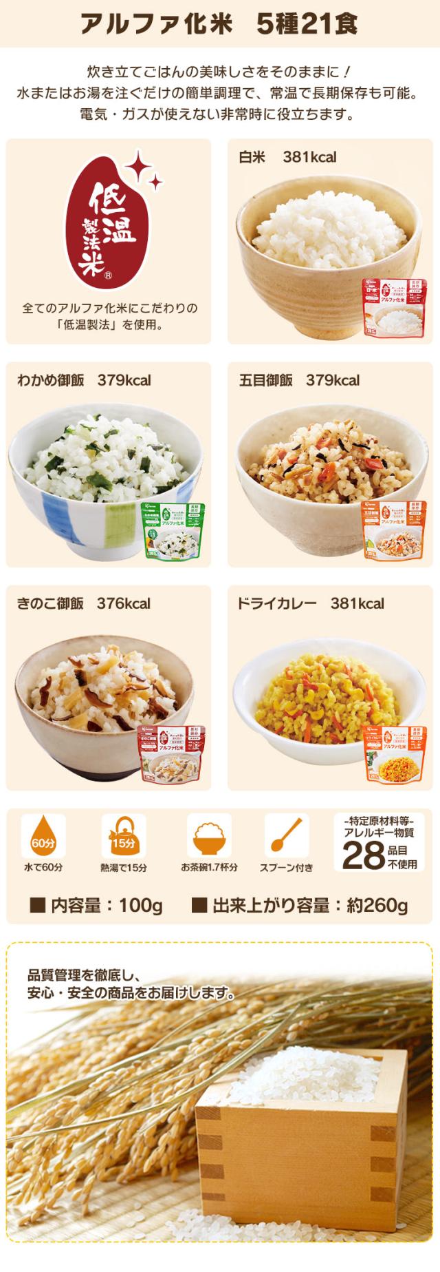 - 各地で地震が起きてるので防災用に購入しました。ご飯だけではなく、おかずも揃っているので安心出来そうです。