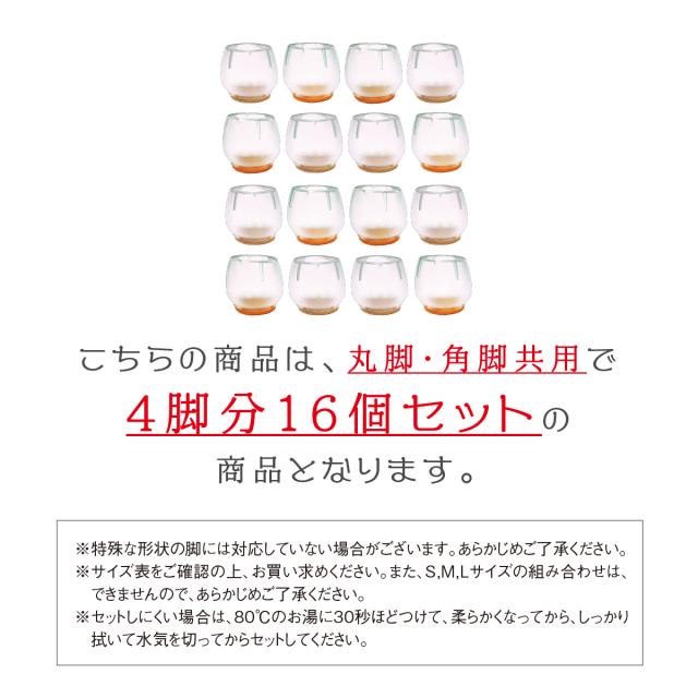 椅子 脚 足 カバー 16個 4席分 セット シリコン製 クリア フローリング カバー 畳 傷防止 床保護 ずれにくい 簡単装着 椅子 カバー 便利アイテム インテリア f-cover