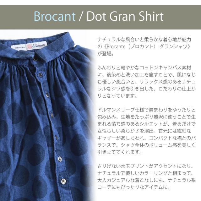 【 涼やかに、ふんわり軽やかに 】シャツ ブロカント 水玉キャンバス ドット グランシャツ Brocante DMG ( 36-0331X ) 洗いざらし ハーフスリーブ ブラウス トップス ドルマンスリーブ ブロカンテ ドミンゴ レディース フェミニン ディーエムジー おしゃれ アーベン