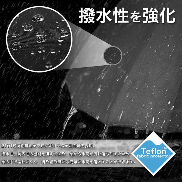 撥水性、防汚性の機能を備えており、傘から水滴が流れ落ちやすいため、傘の中で濡れにくく、