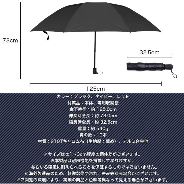 大きいサイズ 折り畳み傘 10本骨 晴雨兼用 メンズ レディース 耐風 折りたたみ かさ 雨傘 日傘 遮光 紫外線 UVカット 無地