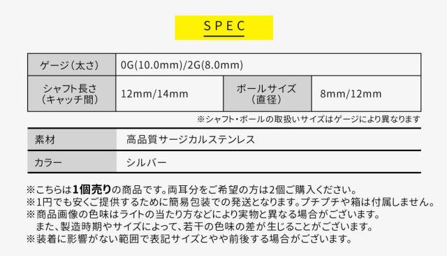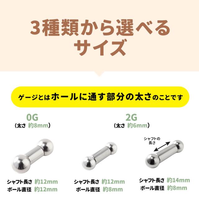 太さ0G,2G シャフト長さ12mm〜14mm ボールサイズ8mm〜12mmのストレートバーベルです。