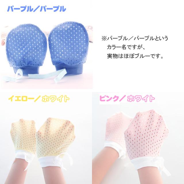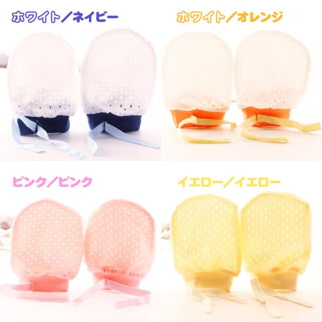 ベビー用 ミトン ひっかき防止 カラバリ9色 ひっかき傷防止 手袋 左右兼用 新生児 赤ちゃん 出産祝 かきむしり防止 ひっ掻き 掻きむしり メッシュ コットン 綿 紐付き 新生児・出産お祝い・出産準備 春夏秋冬 オールシーズン