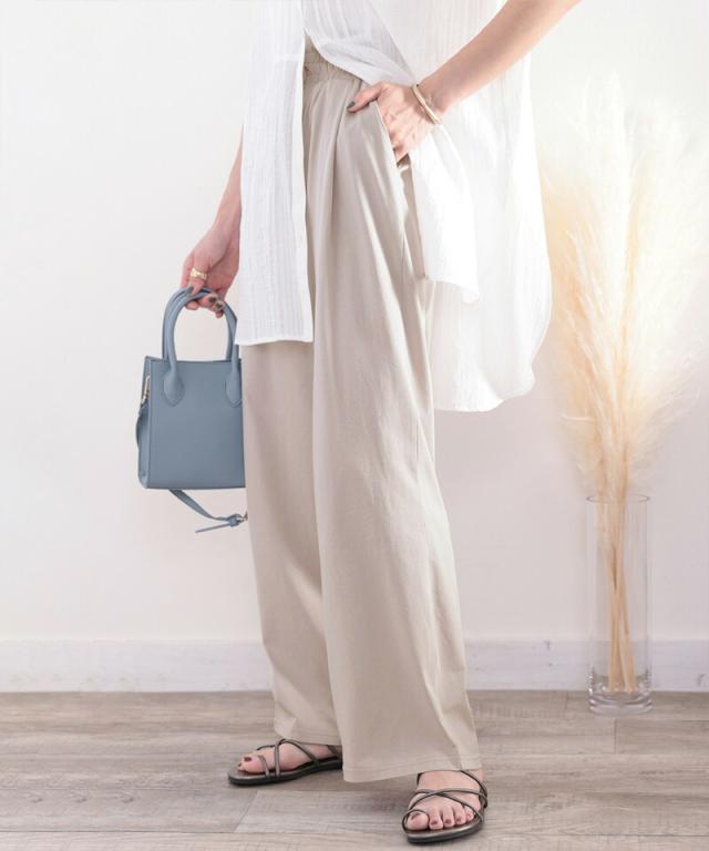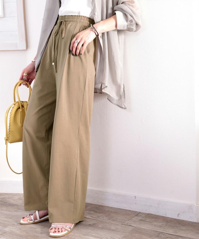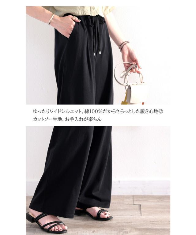 ★綿100%、さらり涼し気!イージーカットフレアパンツ★