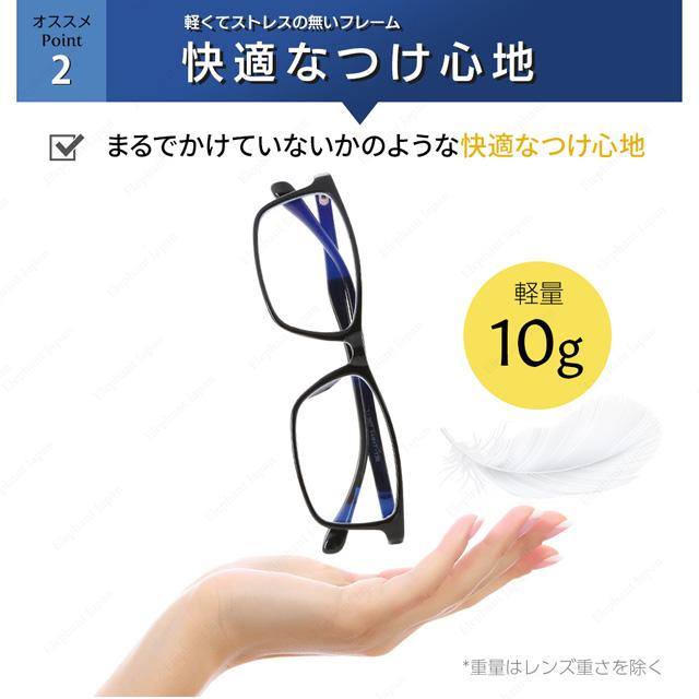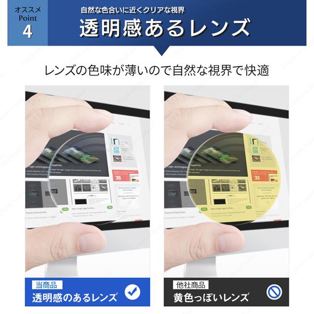 | 【ブルーライト&紫外線カット】 | 目に悪影響を与えるとされる有害光線をカット。 ブルーライト最大99.9%、UV99%以上カットし目と健康を守ります! |