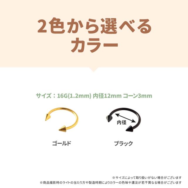コーン サーキュラーバーベル 16G サージカルステンレス ゴールド ブラック イヤーロブ ヘリックス トラガス 軟骨ピアス ボディピアス コーン