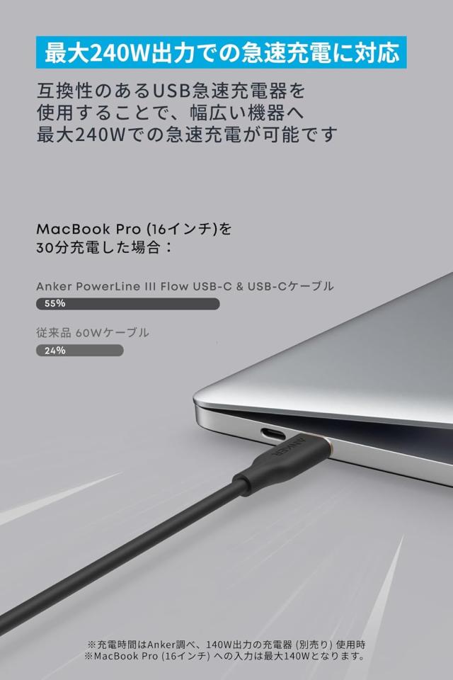 Anker PowerLine III Flow USB-C & USB-C ケーブル Anker絡まないケーブル PD対応 シリコン素材採用 240W iPad MacBook 各種対応 (1.8m)