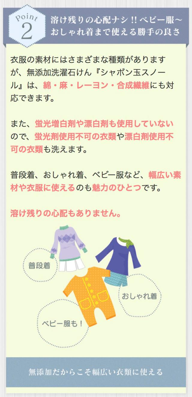 蛍光増白剤、香料、色素、着色料、合成界面活性剤は不使用。