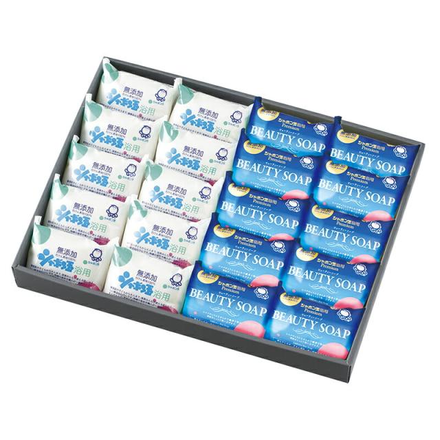 浴用石けん100gとビューティーソープ100gを10個ずつ、計20個詰め合わせたギフトセットです。