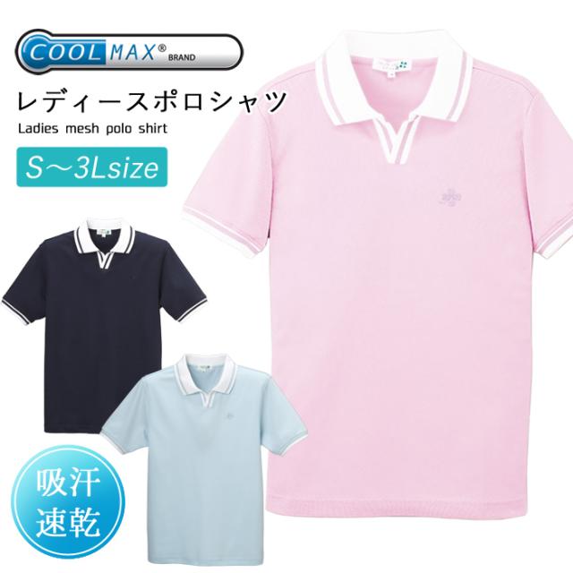 ポロシャツ レディース 業務用 吸汗 速乾 クールマックス素材 半袖 介護 看護 ユニフォーム (D-C-061_DS)【送料無料】幼稚園 保育園 介護士 介護現場 ドクター ナース エステユニフォーム 制服 シンプルで飽きのこないさわやかメッシュポロシャツ agesugi_sfa