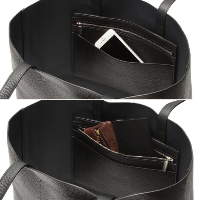 内装ポケットはファスナータイプとオープンタイプの2室。小物類を整理して収納することができます