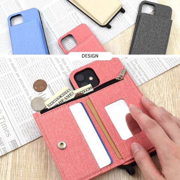 スマホケース iPhone12 iPhone12Pro用 背面ファスナー ポケット付き 携帯ケース 装着簡単 ミラー付き 背面保護カバー 磁石不使用 お洒落 シンプル オシャレ ストラップホール付き 背面保護 スマフォケース スマホカバー バックカバー カジュアル おしゃれ SoftBank au docomo