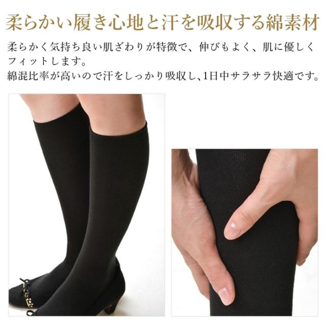 ふくらはぎゆったり ハイソックス ひざ下 日本製 レディース 靴下 ソックス 綿 抗菌 防臭 ブラック 黒 (mm-3853-1p)メール便【送料200】 女の子 通勤 通学 学生 旅行 立ち仕事 うっ血軽減 締め付けない 柔らか綿素材 デスクワーク リモートワーク 春夏 秋冬 オールシーズン