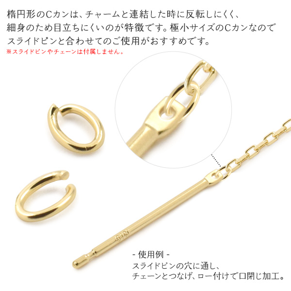 アクセサリーパーツ K18 Cカン 5個セット 1.35×1.8mm 楕円形 カン 手作りアクセサリー アクセ 素材 18金 アクセパーツ 国内製造 アクセサリー 部品 手芸 ハンドメイド ブレスレット アンクレット 18金 金18 k18 アクセパーツ