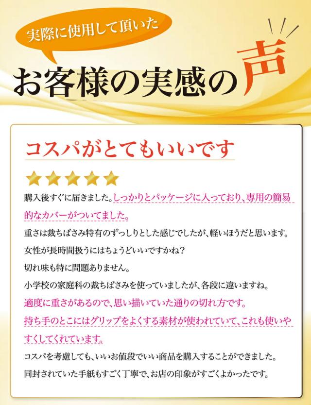 - 思っていた以上の切れ味にビックリしてます。 大事に使います。ありがとうございました