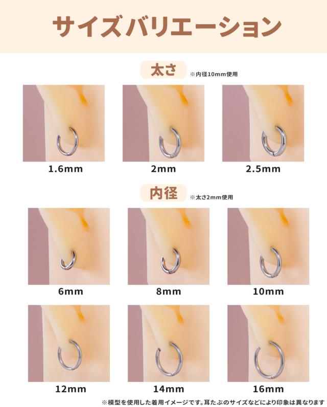 太さ,18G リング太さ1.6mm〜2.5mm 内径6mm〜20mmのです。