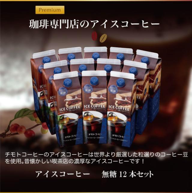 コーヒー アイス ギフト 珈琲専門店のアイスコーヒー<無糖>1L×12本 【リキッドコーヒー】 【チモトコーヒーオリジナル】