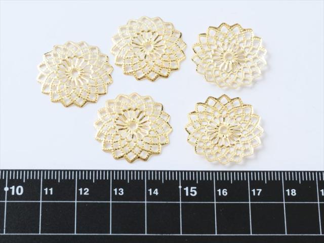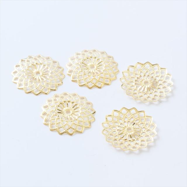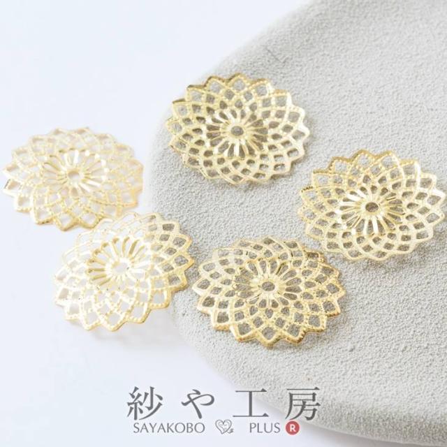 チャーム 透かしパーツ ラウンド ゴールド 23mm 5個 5ヶ アクセサリーチャーム コネクター 繊細 約2.3cm アクセサリーパーツ パーツ メタルパーツ 金属チャーム 金属パーツ 材料 材料 ハンドメイド資材 透かしチャーム レース さや工房