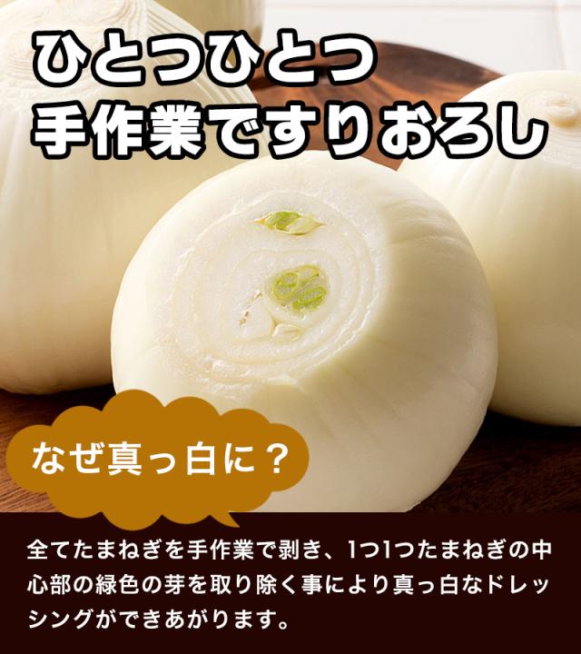 たまねぎ本来のおいしさを引き出し、1本1本手作業でたまねぎを擦りおろした真っ白なこだわりのドレッシングです。 レビュー商品の評価: