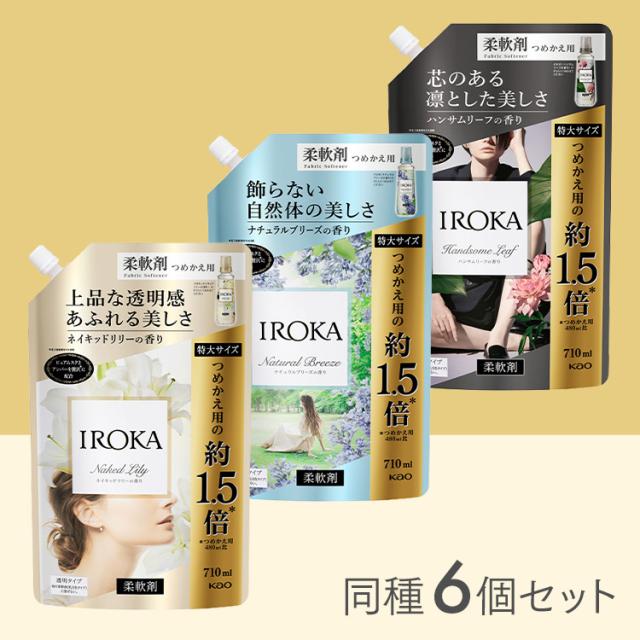 IROKA 柔軟剤 詰め替え用 IROKA フレアフレグランス 710ml 6個セット 新生活 ネイキッドリリー ナチュラルブリーズ ハンサムリーフ IROKA イロカ フレアフレグランス 柔軟剤 特大 プレミアム 詰替え 大容量 まとめ買い IROKA 花王 送料無料