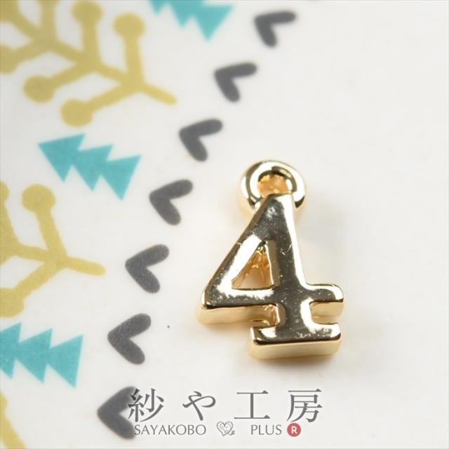 チャーム 数字チャーム 4 10mm ゴールド 1個 1cm チャームパーツ 数字 カン付き ナンバー 金属 アクセサリーパーツ パーツ 金属チャーム ハンドメイド パーツ さや工房
