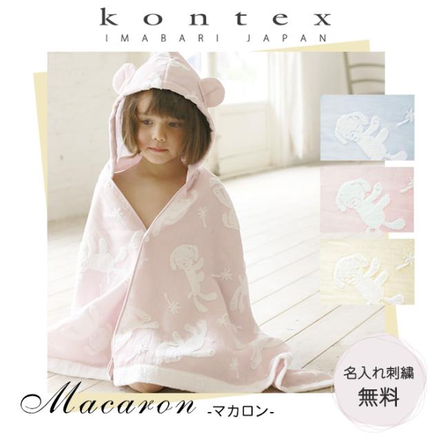 マカロン コンテックス フード付きバスタオル 今治タオル 出産祝い 名入れ無料 バスローブ バスポンチョ おむつケーキ と同梱可