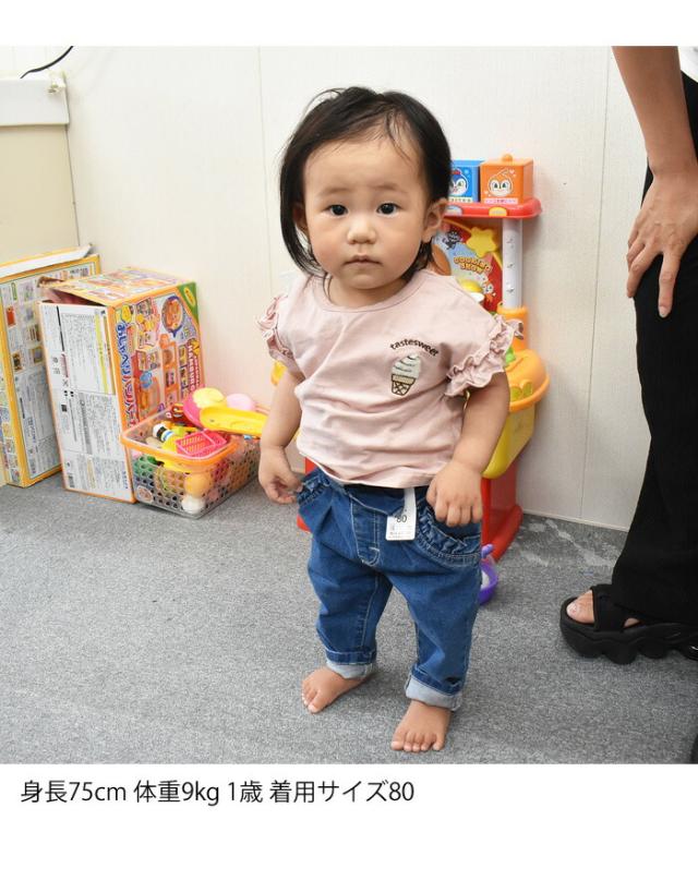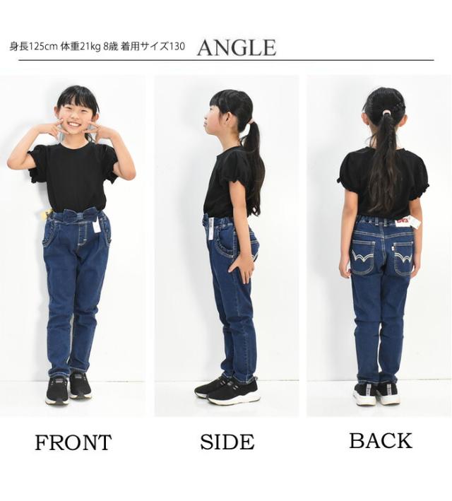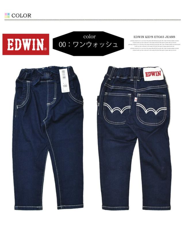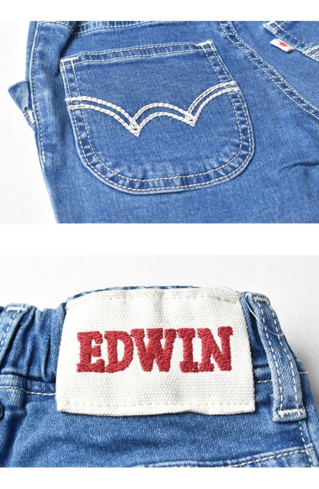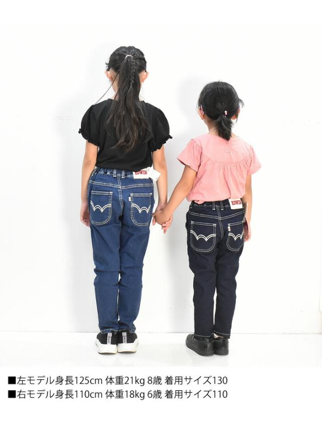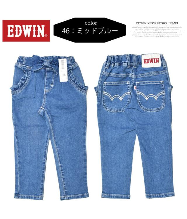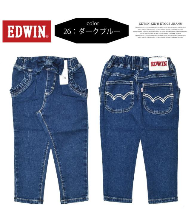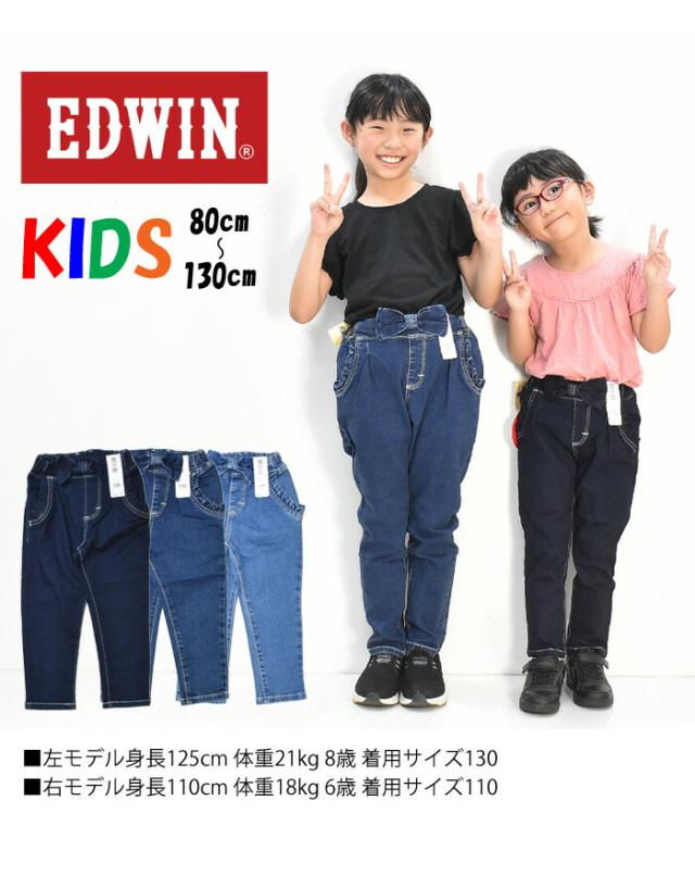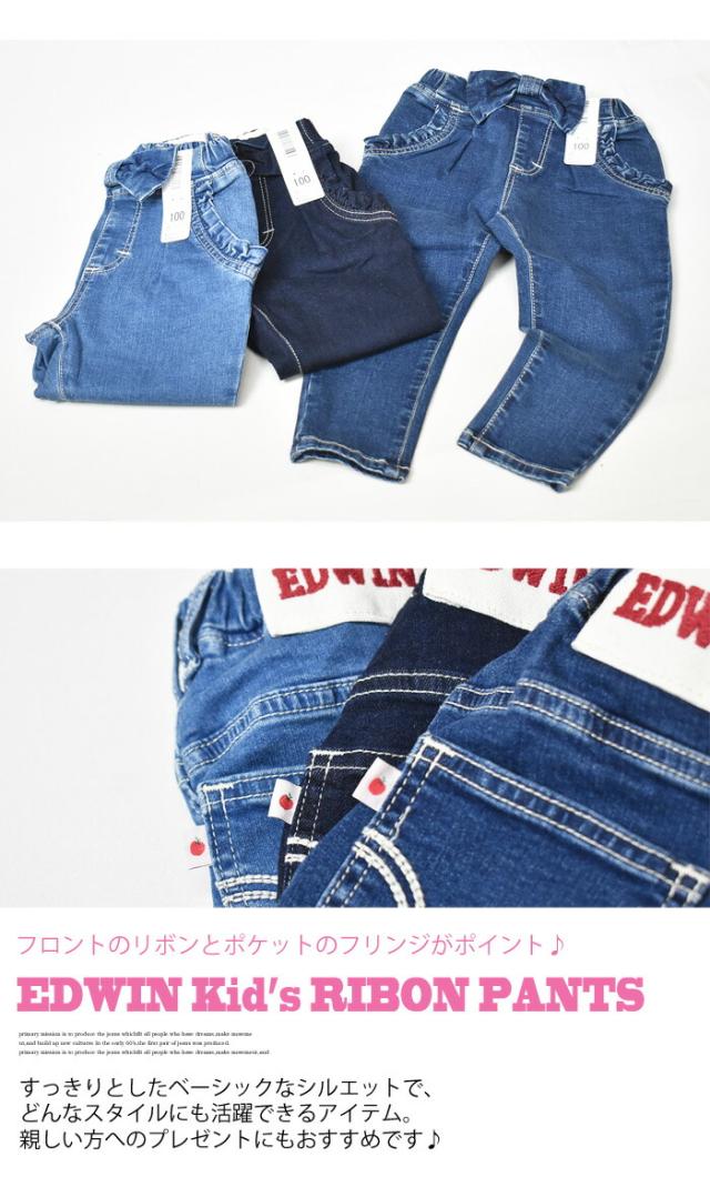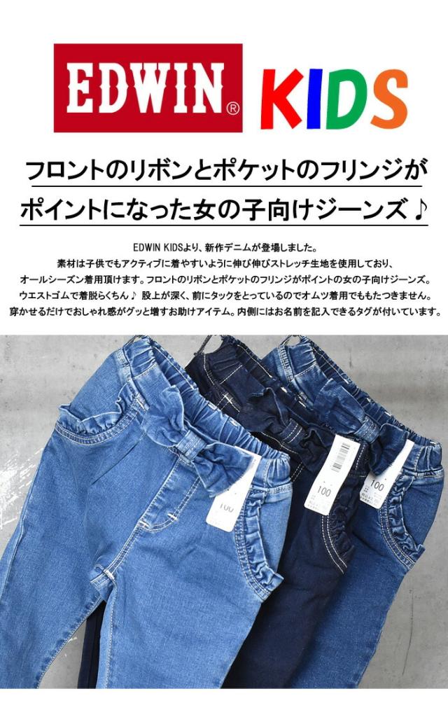 EDWIN エドウィン キッズ ベビー ウエストリボン ジーンズ 80cm〜130cm ストレッチ デニム 女の子 ガールズ トドラーサイズ 長ズボン ETG03