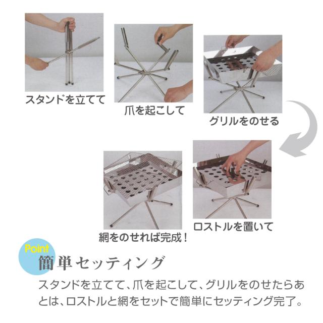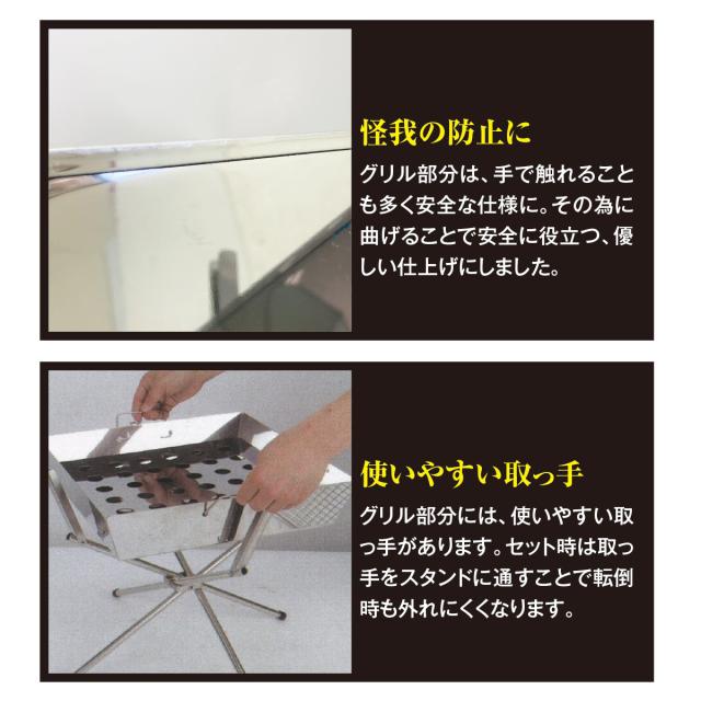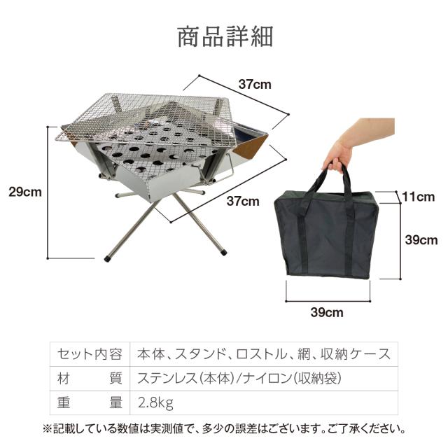 ファイアグリル 焚き火台 バーベキューコンロ ステンレス製 コンパクト 折りたたみ式 スタンド アウトドア grill