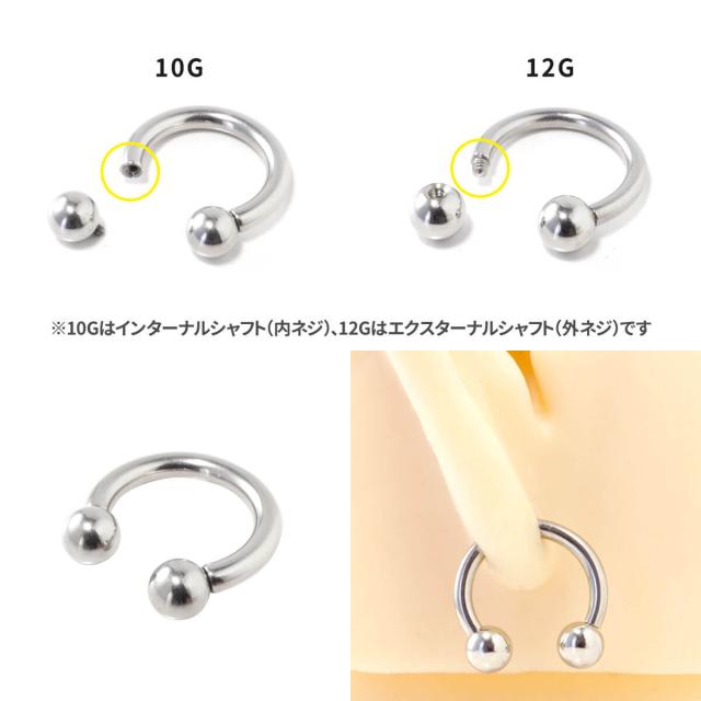 シルバー サーキュラーバーベル 10G 12G サージカルステンレス イヤーロブ トラガス アンチトラガス 軟骨ピアス ボディピアス