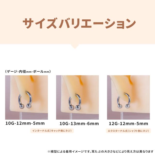 太さ10G,12G 内径12mm〜13mm ボールキャッチ5mm〜6mmのサーキュラーバーベルです。