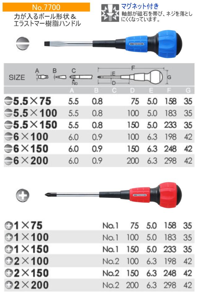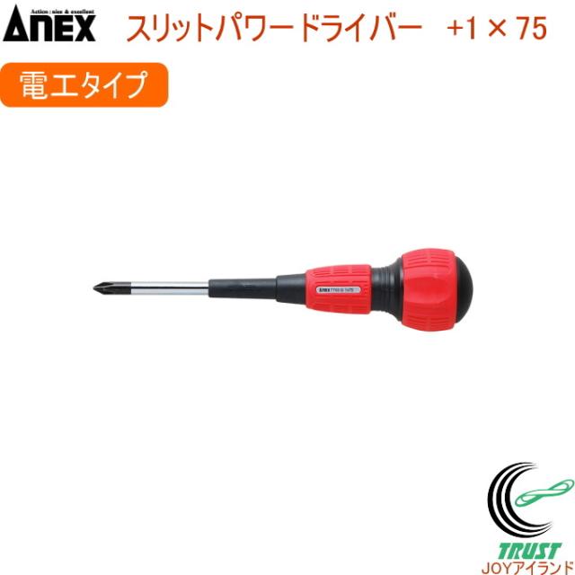 ANEX スリットパワードライバー 電工 レギュラータイプ +1×75 No7700 +1×75 日本製 DIY 工具 作業工具 作業用品 ねじ ネジ回し ねじ回し ネジ外し プラスドライバー 磁石 マグネット付