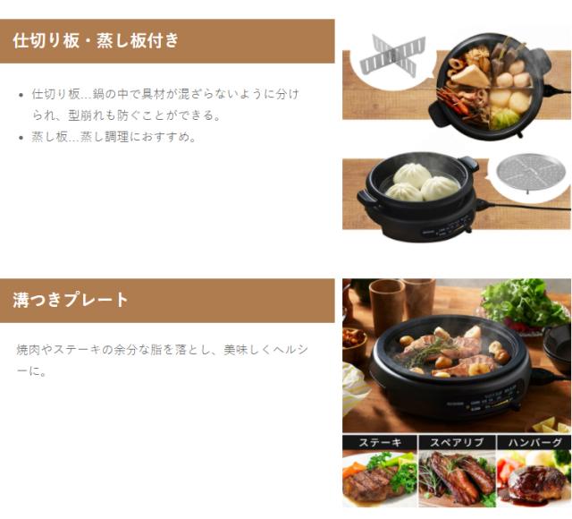 深なべ、溝つきプレート、たこ焼きプレート、蒸し板、仕切り板