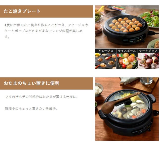 ホットプレート グリル鍋 鍋 1年保証 たこ焼き 3枚プレート アイリスオーヤマ IGU-B3-B 3枚プレート 電気鍋 なべ たこ焼きプレート プレート 蓋付き ガラス蓋 焼肉 グリルなべ おしゃれ 溝付きプレート 深鍋 送料無料