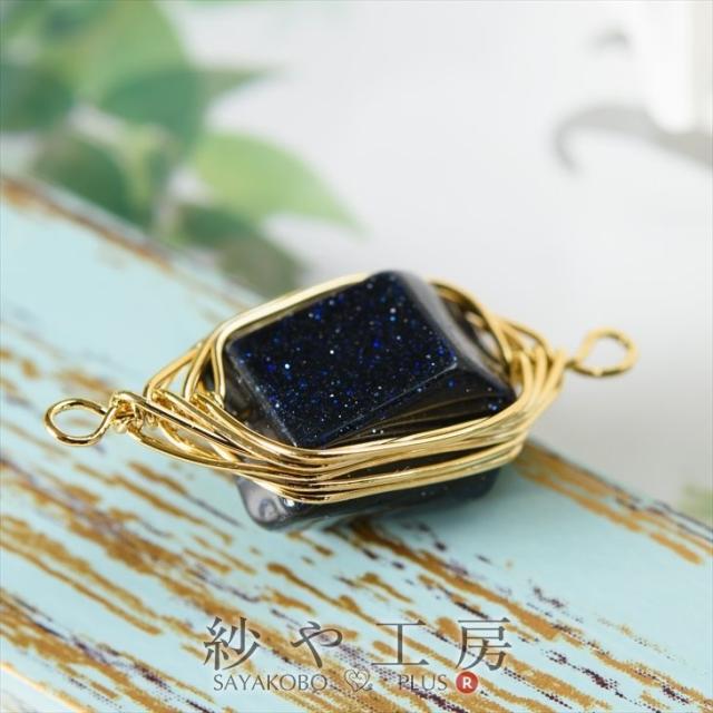 天然石チャーム ワイヤーラッピング チャーム ブルーゴールドストーン 1個 1ヶ ワイヤーチャーム 繋ぎパーツ 2つ穴 多面体 天然石 アクセサリーパーツ パーツ チャームパーツ チャーム資材 チャーム アクセサリー ブレスレット さや工房 手作り