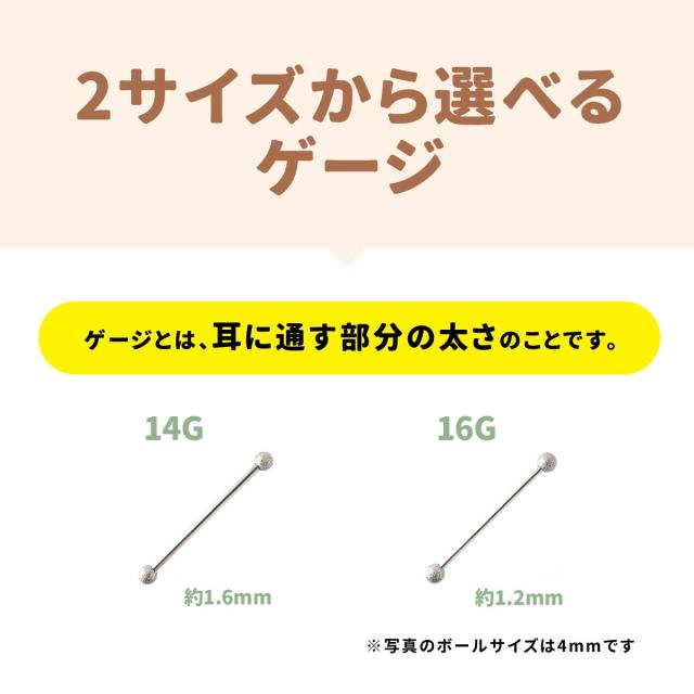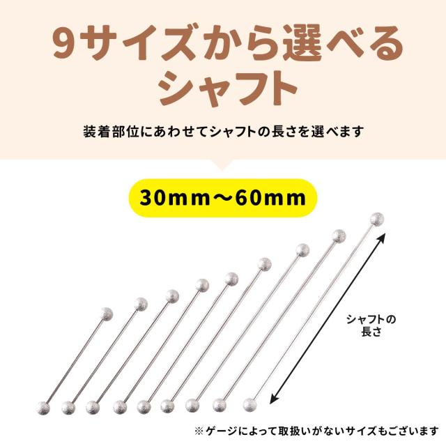 太さ14G,16G シャフト30mm〜60mm キャッチ4mm〜5mmのインダストリアルバーベルです。