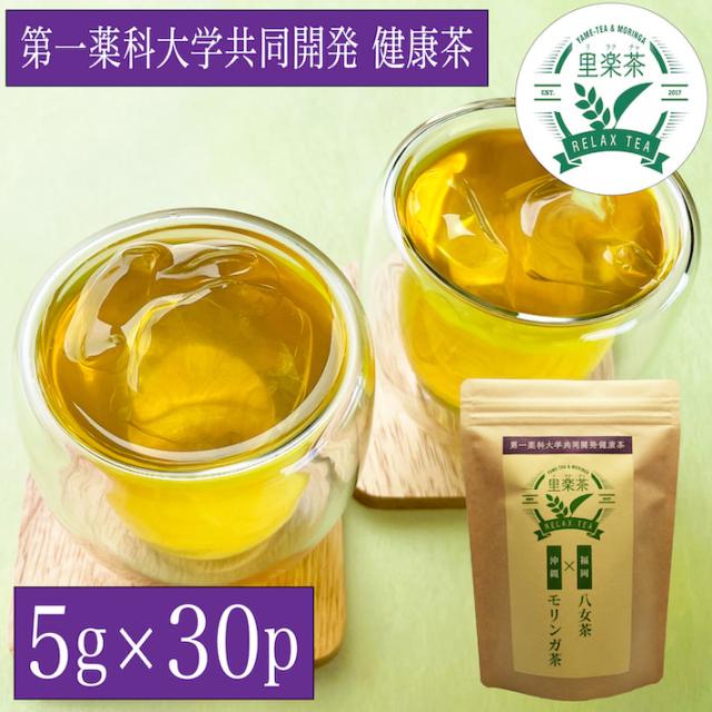 八女茶とモリンガ茶の自然の成分が補完し合った素晴らしい商品です。福岡の薬学部で有名な第一薬価大学との共同開発で生まれました。最初は、八女茶の栄養成分を研究する目的でしたが、モリンガ茶の成分を分析してみると、驚くことに、お互いに足りない成分を自然に補う、とても相性の良い組み合わせということが分かったのです。 里楽茶という名前は、リラックスから命名しました。 第一薬科大学の原口教授は、「八女茶は機能性食品として優秀ではあるが、アミノ酸に関してはモリンガの方がGABA及び必須アミノ酸を豊富に含んでいるおり、八女茶にモリンガ茶をブレンドすることでアミノ酸配合のバランスの取れた製品化が期待される。」という研究結果でした。 これを実現する為に、八女茶とモリンガ茶を絶妙な配合で組み合わせました。八女茶に含んでいるテアニンやモリンガ茶のGABAをブレンドすることで最高のリラックス飲料が完成しました。