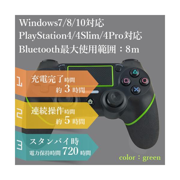 PS4 コントローラー グリーン 互換 ワイヤレス Bluetooth タッチパッド 加速度センサー 重力感応 イヤホンジャック付き (管理S) 送料無料