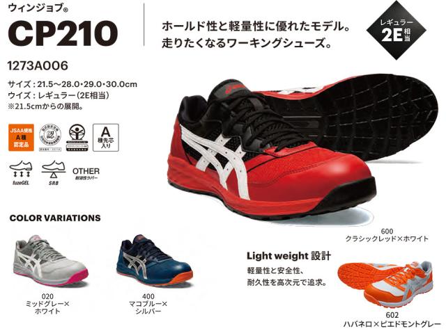 安全靴 asics アシックス WINJOB ウィンジョブ CP210 1273A006 紐靴 JSAA規格 プロテクティブスニーカー